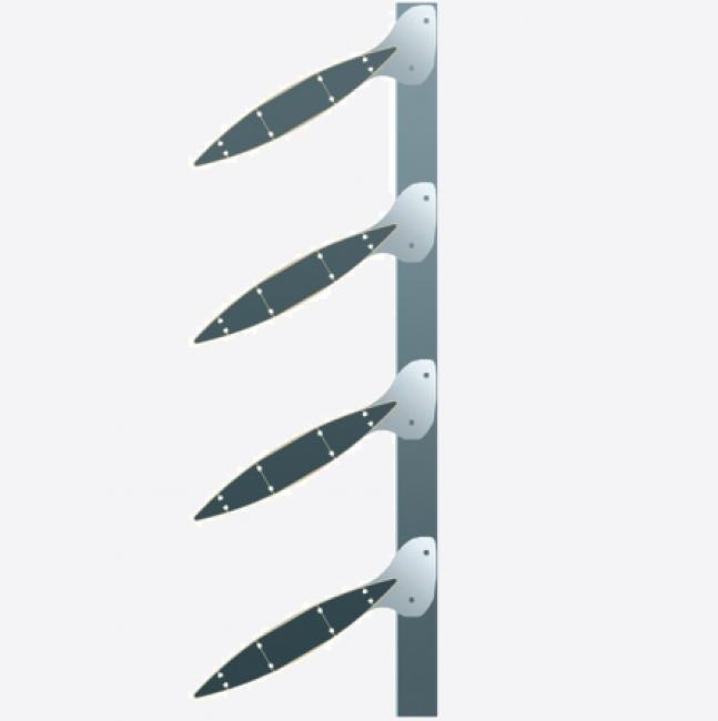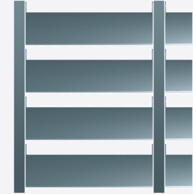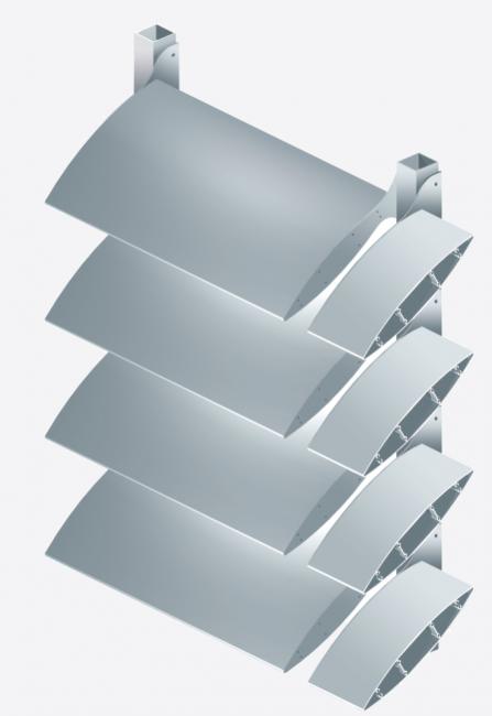 Fijación de lamas mediante chapas de aluminio 5754, con espesores entre 3 y 6 mm, realizadas por corte láser y con tratamiento lacado.